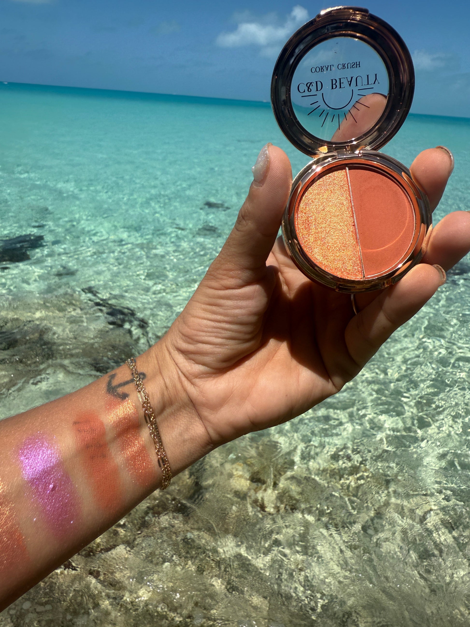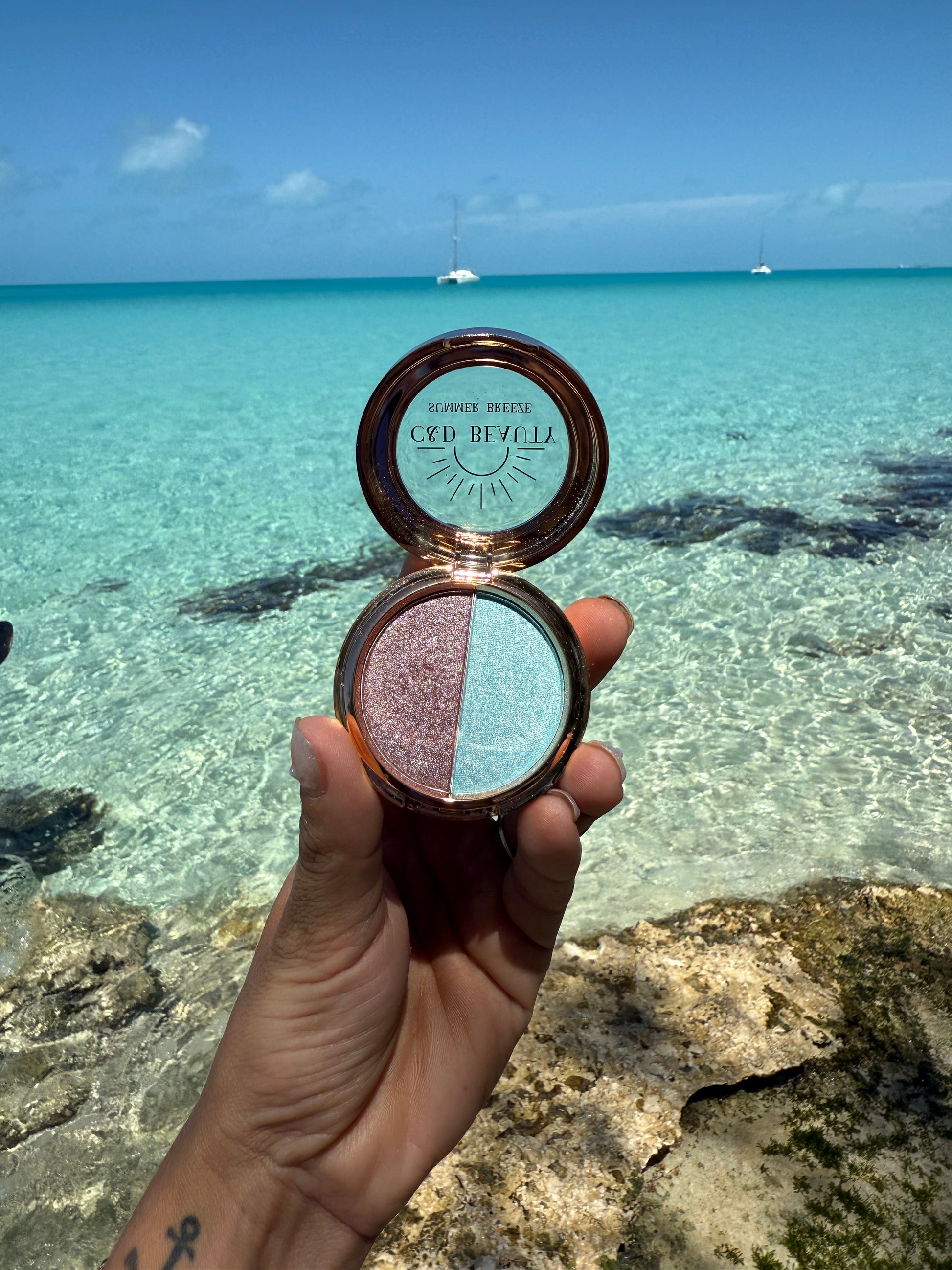 Get swept away by the beauty of the coast with this dreamy double eyeshadow palette. Featuring two beach-inspired shades that capture the essence of sunlit shores and ocean waves, this duo is perfect for creating effortless, radiant looks. Whether you’re chasing sunsets or glowing under moonlit tides, these buttery, blendable shades will have you shining like the sea.
