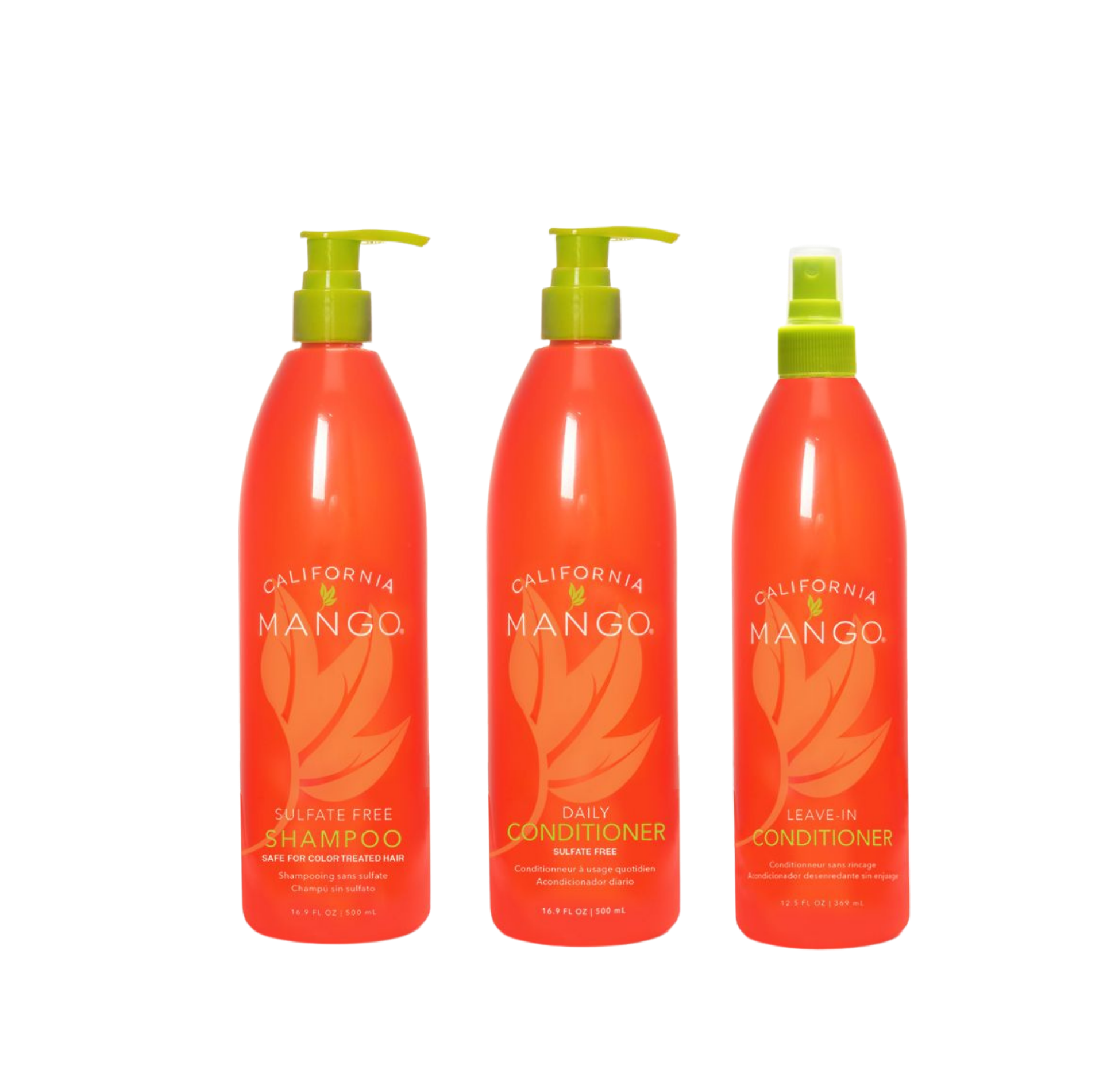 Kit Contains:  Shampoo (16.9 oz), Conditioner (12.5 oz), Leave in Conditioner (12.5 oz)