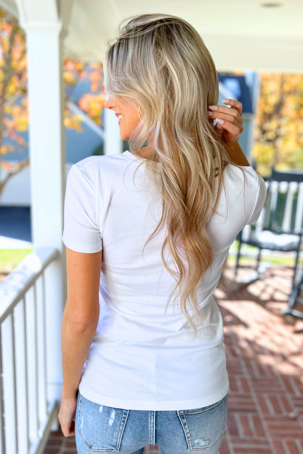 We love a good versatile, comfortable tee! We just can't get enough! Can be paired with just about anything! This slim cut top is sure to become a classic piece in your wardrobe! Made from cotton and spandex and features short sleeve.